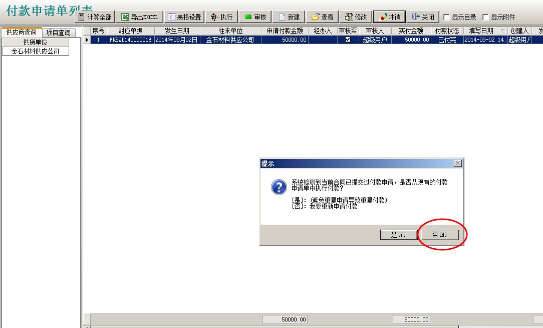 備注:上圖提示為預防超額付款的合同明細提示,點確定即可。