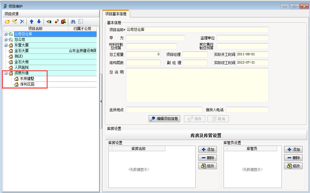 情況分析: 在工程項(xiàng)目資質(zhì)掛靠管理中由于本工程款資金流向是經(jīng)過我公司的,正規(guī)的管理辦法是在【項(xiàng)目維護(hù)】中建立一個(gè)項(xiàng)目來管理,如下圖: