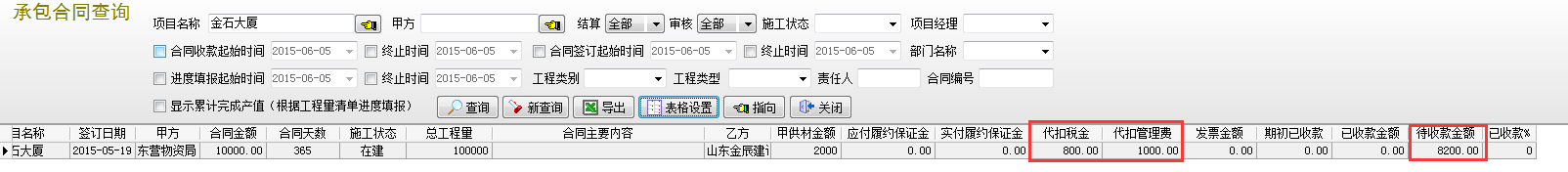 查詢承包合同待收款如下