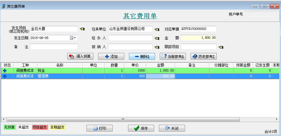 選擇新增填寫管理費(fèi)和稅金金額如下圖