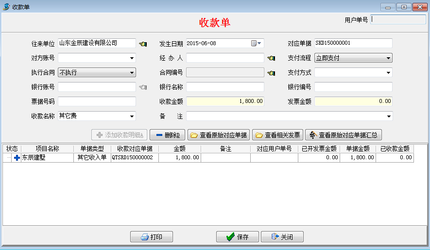 然后再做收款單,如下圖:
