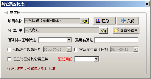 使用時選擇好項目,選擇好預算單,然后點【匯總】按鈕,進行統計。