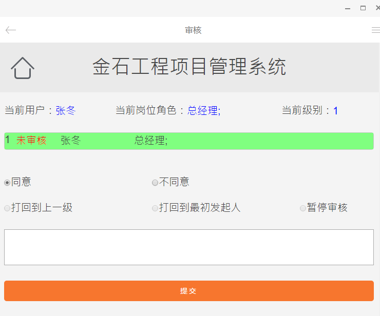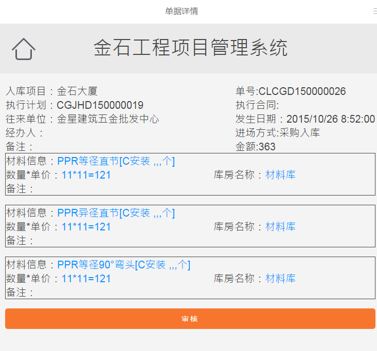 收到提醒信息后如果想審核該單據(jù)點擊“點擊審核”會自動跳轉到金石軟件手機版版(支持PC瀏覽器)界面。如下圖: