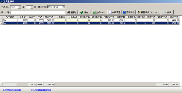 則按照工資項(xiàng)目定義,生工工資表如圖: