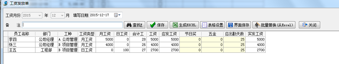 注:前兩種方法都是按軟件正常的流程處理工資(通過【員工考勤單】生成【員工工資單】,能將每個月發生的【員工罰款單】、【員工預支款】、【員工請假單】、【員工加班單】這些單據關聯到【員工工資表】中)