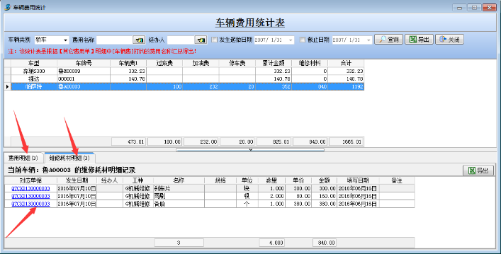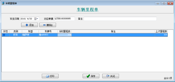注:三個單據(jù)中“上次里程數(shù)”,系統(tǒng)自動檢索之前最近的一個單據(jù)的“當(dāng)時里程數(shù)”,如果沒有最近的單據(jù)則為【內(nèi)部車輛維護】中所填寫的“期初里程數(shù)”。