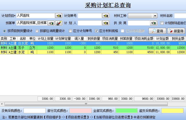 如何在金石工程項(xiàng)目管理軟件中查看材料的“計(jì)劃上報量”、“計(jì)劃審定量”、“調(diào)入量”、“到貨數(shù)量、項(xiàng)目消耗量”、“預(yù)算數(shù)量”