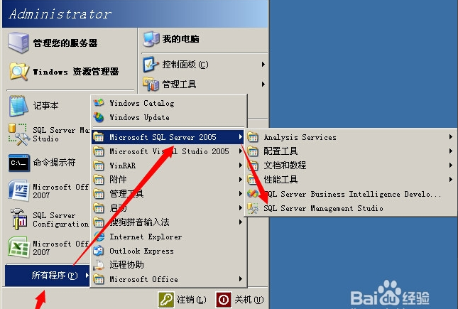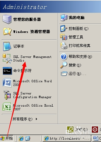 1、在開始菜單中單擊SQL Server Management Studio,啟動數據庫。如果沒看到SQL Server Management Studio,可以在所有程序找到SqlServer2005