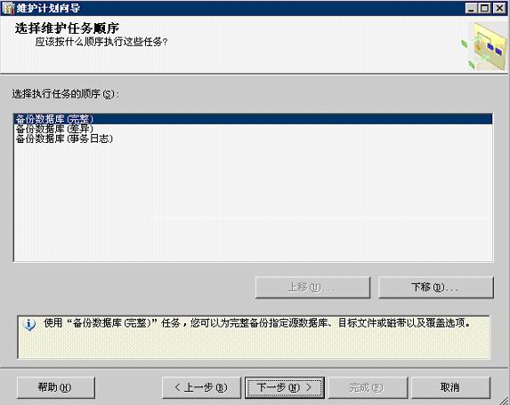 8、點擊【下一步】按鈕:彈出以下【選擇維護任務順序】對話框,如果有多個維護任務,在此可以通過【上移】和【下移】兩個按鈕來設置維護任務的順序,設置完畢后單擊【下一步】按鈕。