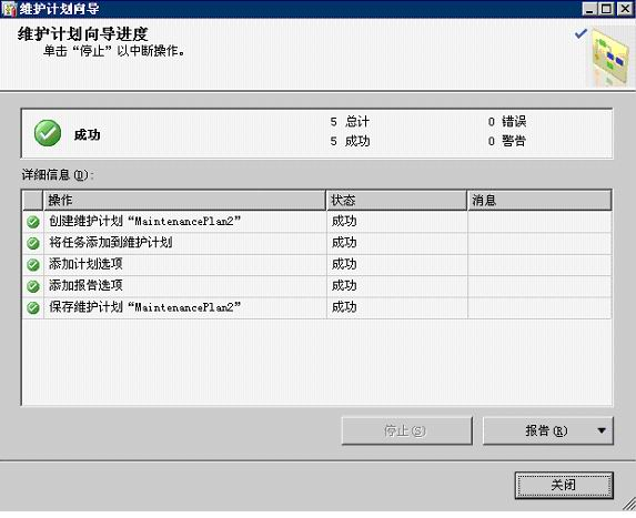 12、創建完維護計劃后,出現以下【維護計劃向導進度】畫面,這樣就完成了自動備份的操作。
