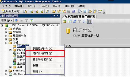 4、右擊【維護計劃】,在彈出的快捷菜單里選擇【維護計劃向導】選項