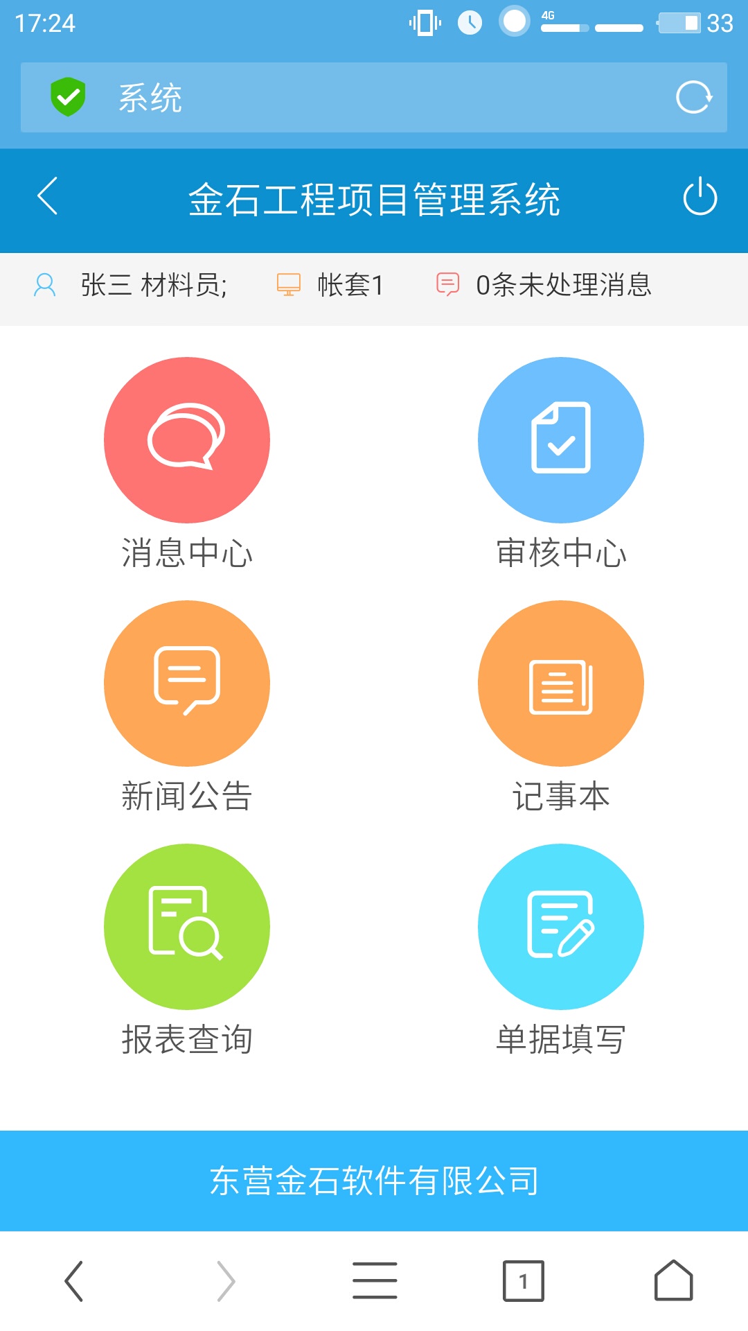 (3) Browser端主要應(yīng)用在移動(dòng)設(shè)備終端,目前已經(jīng)與微信無縫整合,只需安裝微信就可正常使用各項(xiàng)功能,主要用于業(yè)務(wù)單據(jù)審核、微信消息提醒、現(xiàn)場(chǎng)進(jìn)度填報(bào)、部分報(bào)表資料文檔查詢、部分單據(jù)填寫等。