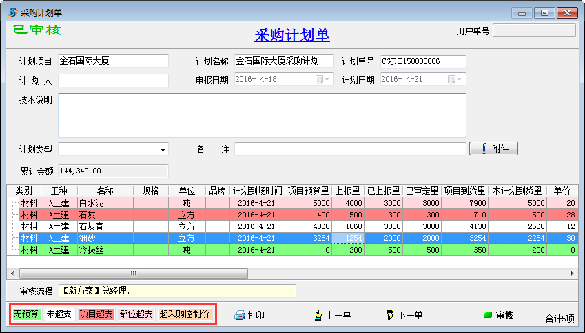 4、材料超預(yù)算實(shí)時(shí)提醒