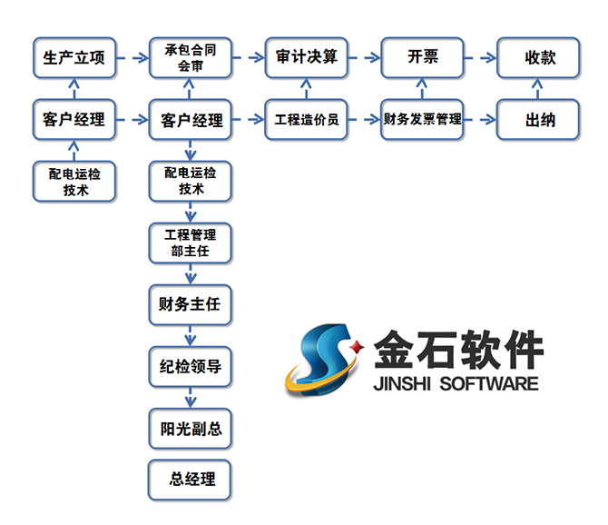 金石軟件工程師通過陽光電力公司相關(guān)領(lǐng)導的詳細溝通后,結(jié)合實際情況,對陽光電力管理流程進行了全面的梳理,操作方案流程如下: