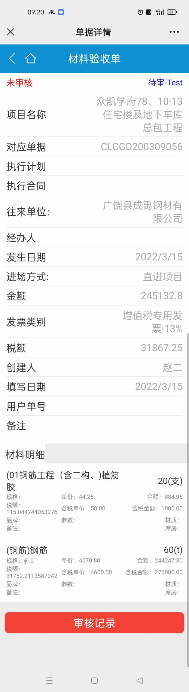 我們以材料驗(yàn)收單為例