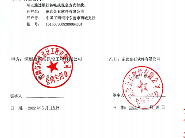 金石軟件簽約深圳市恒富建設工程有限公司