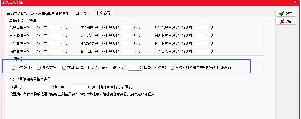 金石工程項目管理軟件可以自定義密碼策略,限制設置密碼的形式。