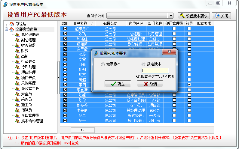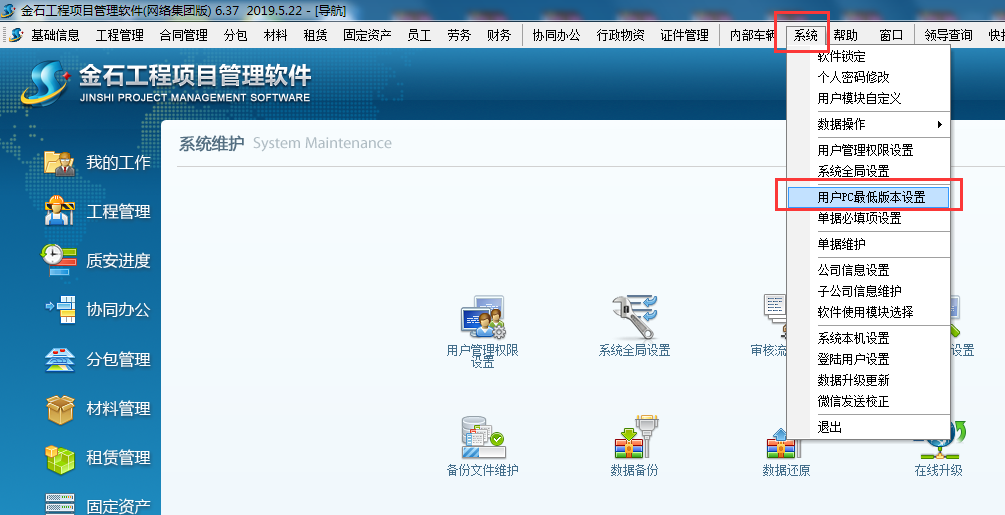 在使用金石工程項目管理軟件的過程中經(jīng)常會碰到有的同事升級了較新版本的新功能,其他同事還在使用老版本不能更好的體驗金石軟件新功能,在6.35版本中我們對此進(jìn)行了限制,可要求所有用戶均升級最新版本或指定的版本,否則系統(tǒng)將將強制升級,操作流程如下: