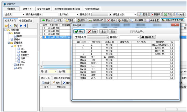 右鍵還可以設置投標項目查看人。