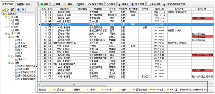 根據投標狀態可以統計中標率: