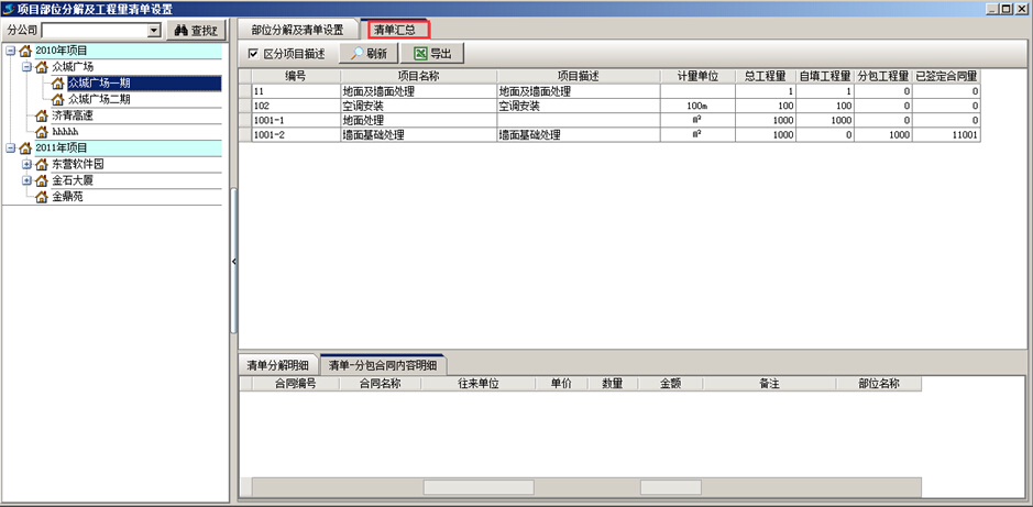 三、工程量清單匯總以及工程量進度查詢