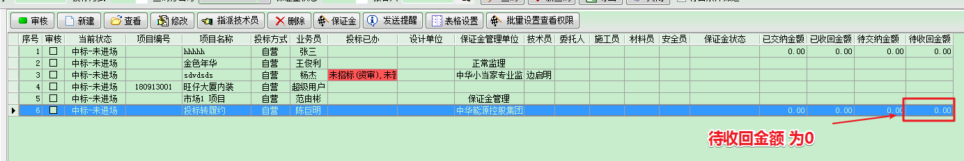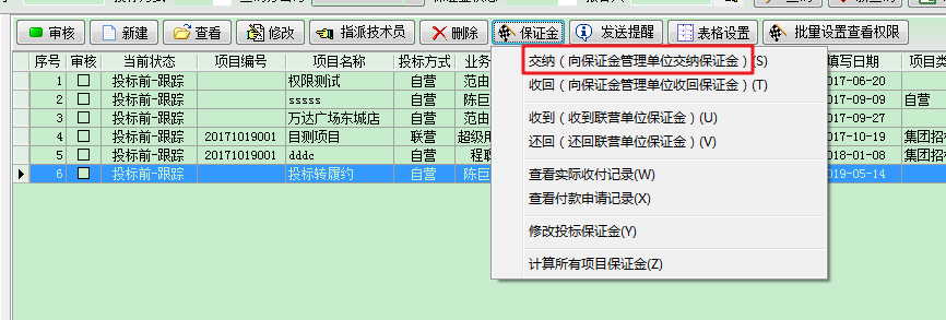 生產立項后,在項目開拓中,我們再次查看投標保證金的相關信息,如下圖所示