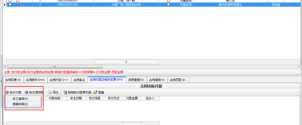 選擇付款基數(shù)和付款的比例(設(shè)置付款比例后對(duì)本合同超過(guò)70%不能繼續(xù)付款)