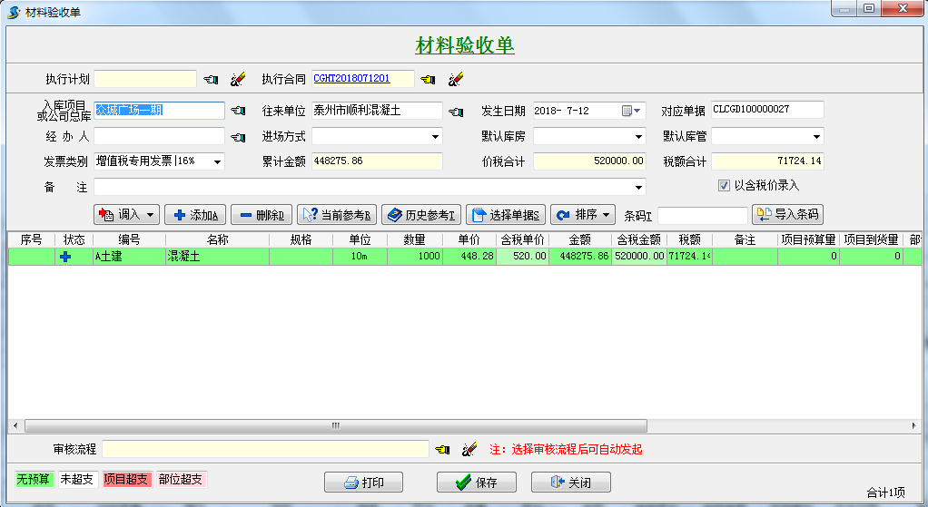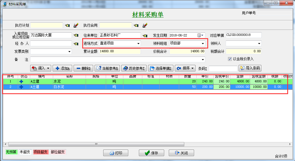1.項(xiàng)目上沒(méi)有采購(gòu)計(jì)劃以及采購(gòu)合同的情況,可進(jìn)行直接采購(gòu),做工程項(xiàng)目管理軟件采購(gòu)入庫(kù)單采購(gòu)入庫(kù)或直進(jìn)項(xiàng)目,這種情況適合項(xiàng)目上零星材料的采購(gòu)。如圖: