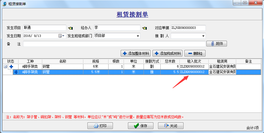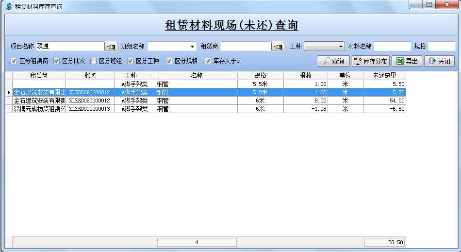 查詢下租賃的庫存可看到一根鋼管的規格已經改變為5.5米,如下圖: