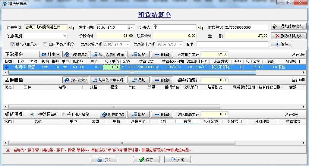 工程項目管理軟件在租賃過程中經常會發生以下情況:如租賃十根6米的鋼管,使用過程中有一根因實際需求損耗了0.5米 需要給予對方賠償