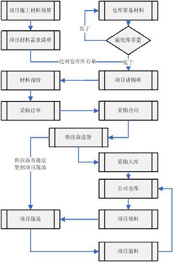 為了減少乃至杜絕這種情況的產生,《金石建筑工地管理系統》中采取了雙線控制的方案,在項目開工前,要求公司相關部門配合項目經理及項目材料管理人員做好詳細而較為精確的材料預算,自上而下的控制材料預算;在項目施工過程中,項目部成員須嚴格的按照材料預算申請用料,做到小材采購項目經理可以有自主權,大材料必須報申請計劃。
