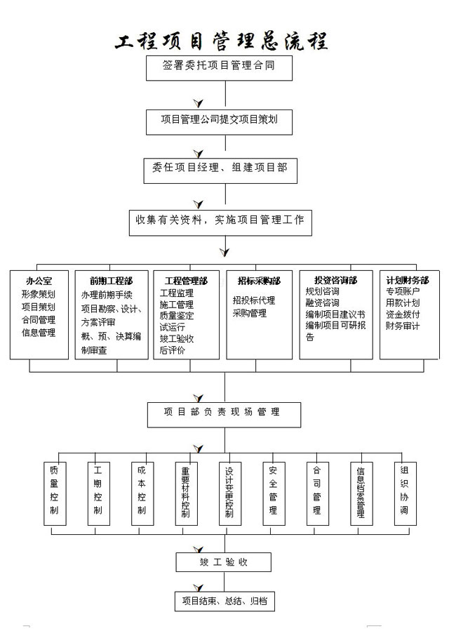 建筑項目的生產要素有勞動力、材料、機械設備、技術和資金,這些要素具有集合性、相關性、目的性和環境適應性,是一種相互結合的立體多維的關系,這就說明項目的實現是一個具有系統性的施工過程。建筑項目管理具有系統管理的特點。加強項目管理,必須對施工項目的生產要素詳細分析,認真研究并強化其管理。金石建筑工地管理系統著眼于建筑施工項目中的各種重要環節有效管理,既考慮到對單個項目中各種生產因素的管理,又考慮到建筑企業管理過程中對公司有限資源的統籌安排及有效利用。下文就以山東宏太為例,簡單介紹針對建筑施工企業項目管理的特點,以及如何建立完善、高效的項目管理信息化系統。 該公司項目管理總流程如下圖:
