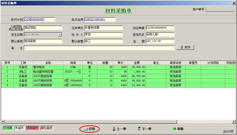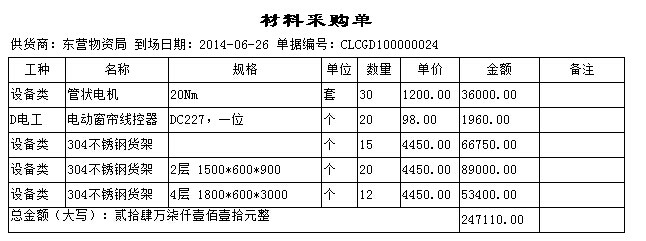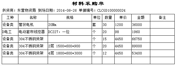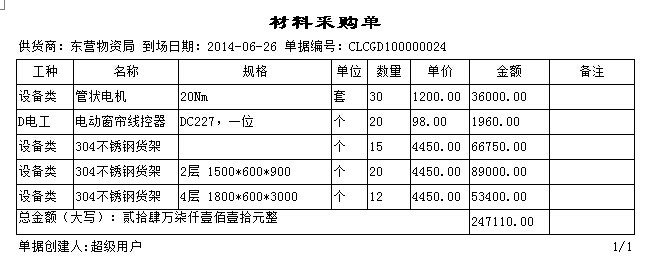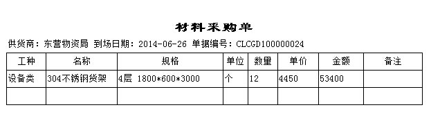 以下圖中單據(材料采購單)為例,新建一個打印報表。