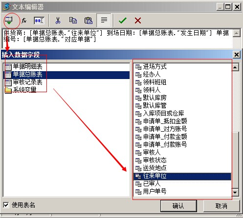 在彈出的表達式編輯器中,再來選擇具體的字段。我們選擇單據明細表中的金額字段,那么統計的就是所有明細項的總金額。如下面幾張圖所示: