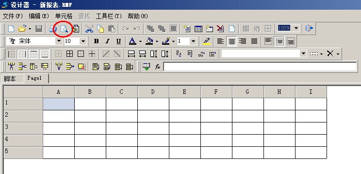 3. 報表設計器與Excel 電子表格基本類似,我們可以通過【打印預覽】按鈕一邊設計一邊進行查看。