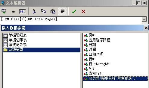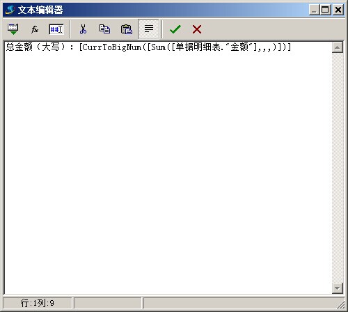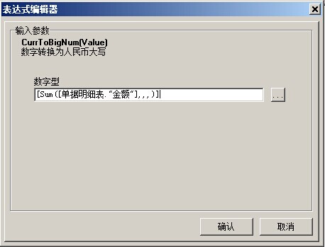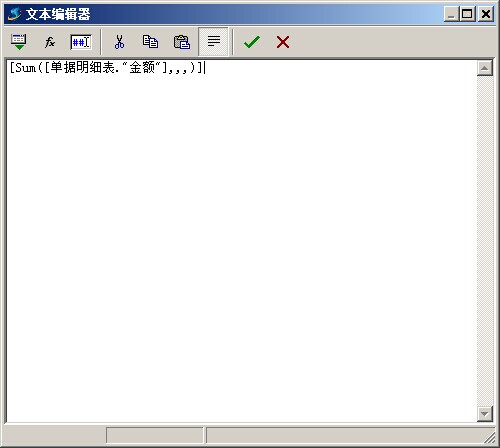 選擇好,之后點擊確定,就會依次保存各個選擇框,最終結果:[Sum([單據明細表."金額"],,,)]