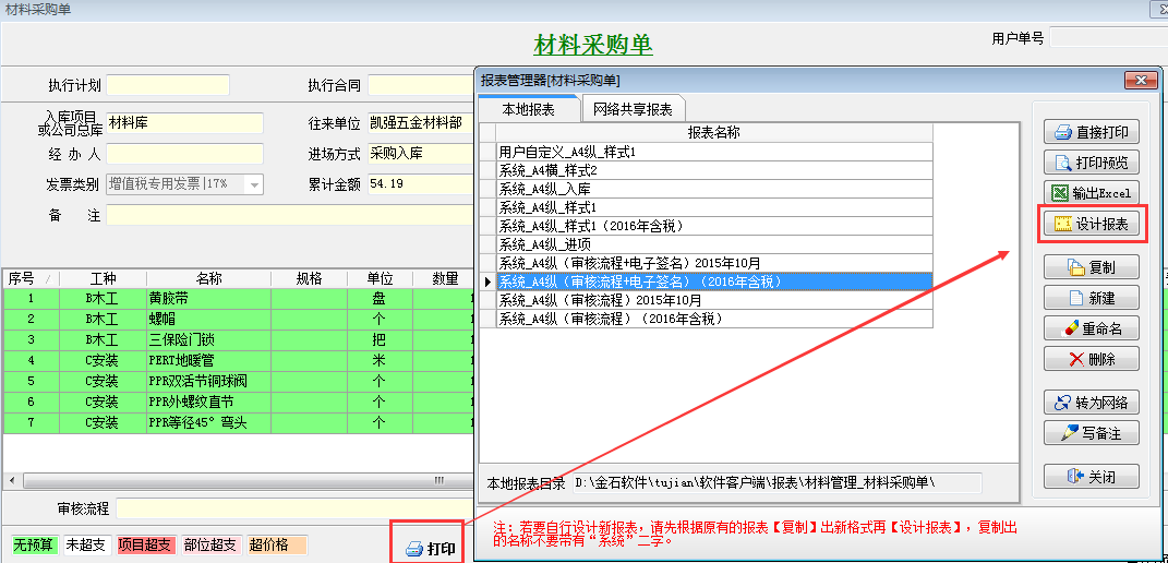 打印次數(shù)變量為:[CurDanJuPrintCount],在業(yè)務(wù)單據(jù)【打印】處,選中打印報表,點(diǎn)擊設(shè)計報表,在報表【總結(jié)】項中增加“本次打印為第[CurDanJuPrintCount]次打印。