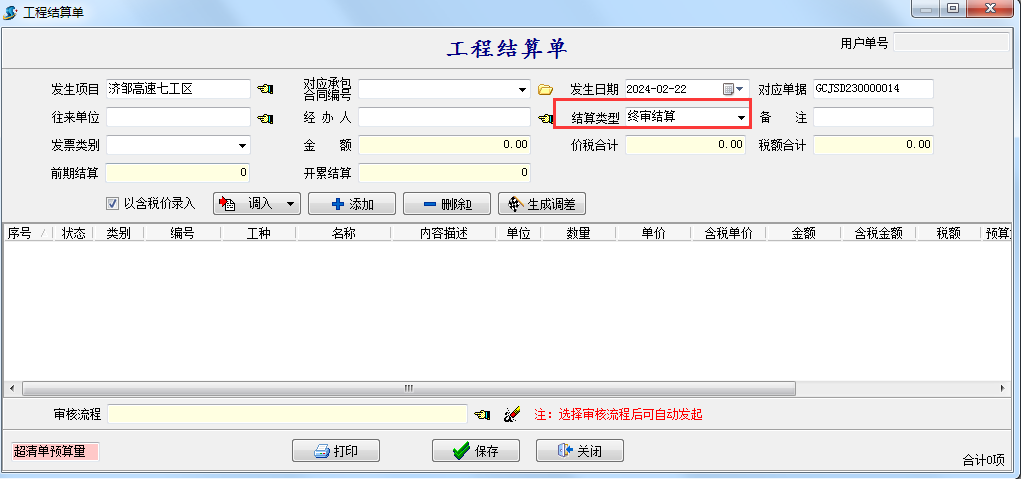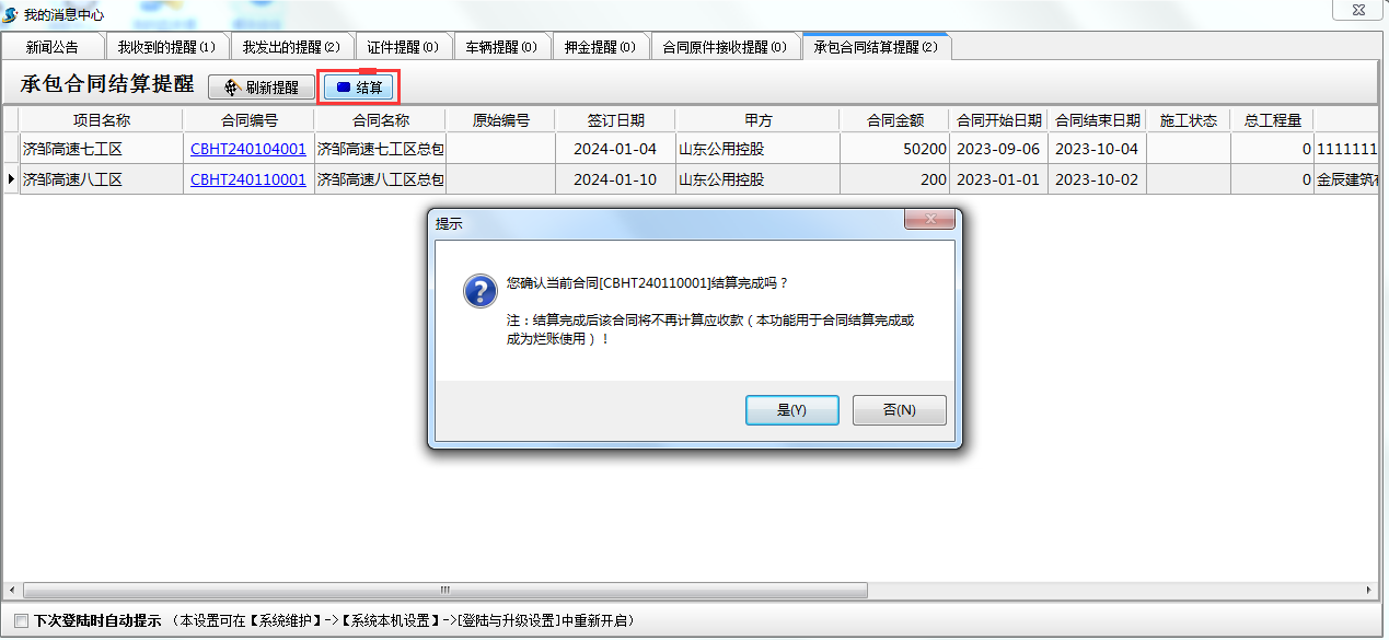 如果項目結(jié)算完成,可以點擊結(jié)算選項取消提醒,也可以填寫工程結(jié)算單選擇終審結(jié)算取消提醒。