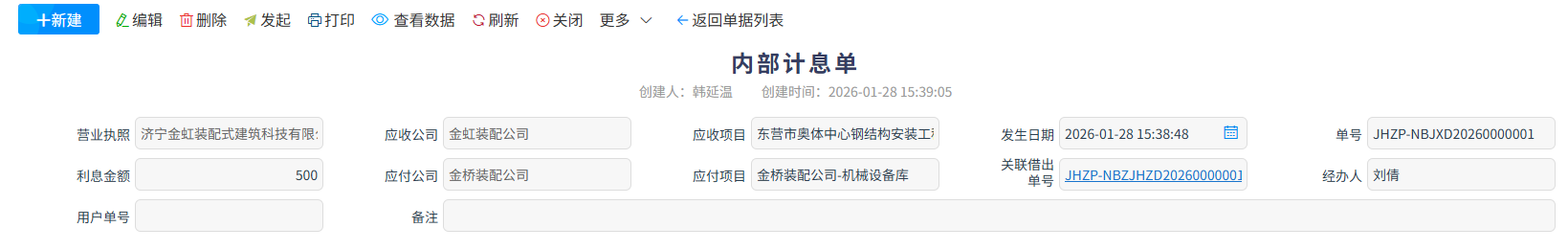 內部計息單是企業(yè)內部資金管理的核心核算單據,核心用于對公司內部賬戶、部門或項目間的資金拆借、占用、調撥等往來場景,按照約定利率精準核算資金占用利息,清晰記錄計息基數、利率、計息周期及應付 / 應收利息金額。