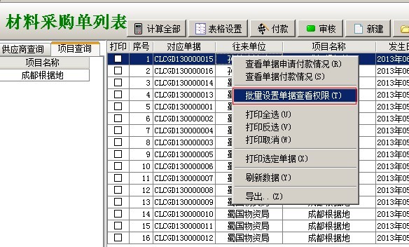 如果,【單據(jù)創(chuàng)建人可以通過標(biāo)記來設(shè)置其他查看用戶】這個(gè)開關(guān)打開開啟,那么單據(jù)創(chuàng)建人在創(chuàng)建完成單據(jù)后必須在列表中選中業(yè)務(wù)單據(jù),點(diǎn)鼠標(biāo)右鍵,對該業(yè)務(wù)單據(jù)進(jìn)行授權(quán),被授權(quán)的用戶才能看到該業(yè)務(wù)單據(jù)(多級審核單據(jù)中審核人不受限、部門管理員不受限制(部門管理員在上圖中【部門管理員或部門經(jīng)理】處開啟))。如下圖: