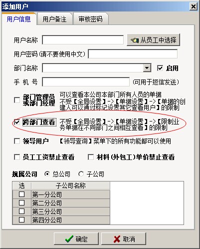 如果,【限制業(yè)務(wù)單據(jù)在不同部門的相互查看】這個(gè)開關(guān)開啟,那么與單據(jù)創(chuàng)人部門不同的用戶(多級審核單據(jù)中審核人不受限),就是無法看到該業(yè)務(wù)單據(jù)。判斷是否與單據(jù)創(chuàng)建人部門相同,是看用戶列表中的部門項(xiàng)。如下圖: