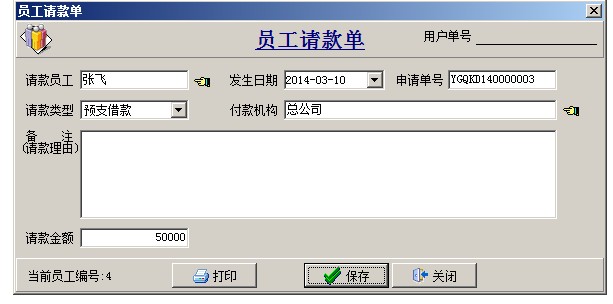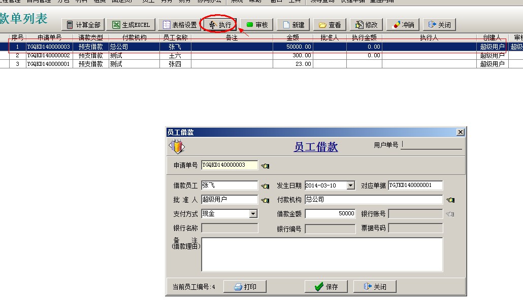 員工請款單可以開啟使用多級審核,審核之后執(zhí)行付款,生成員工借款單,保存